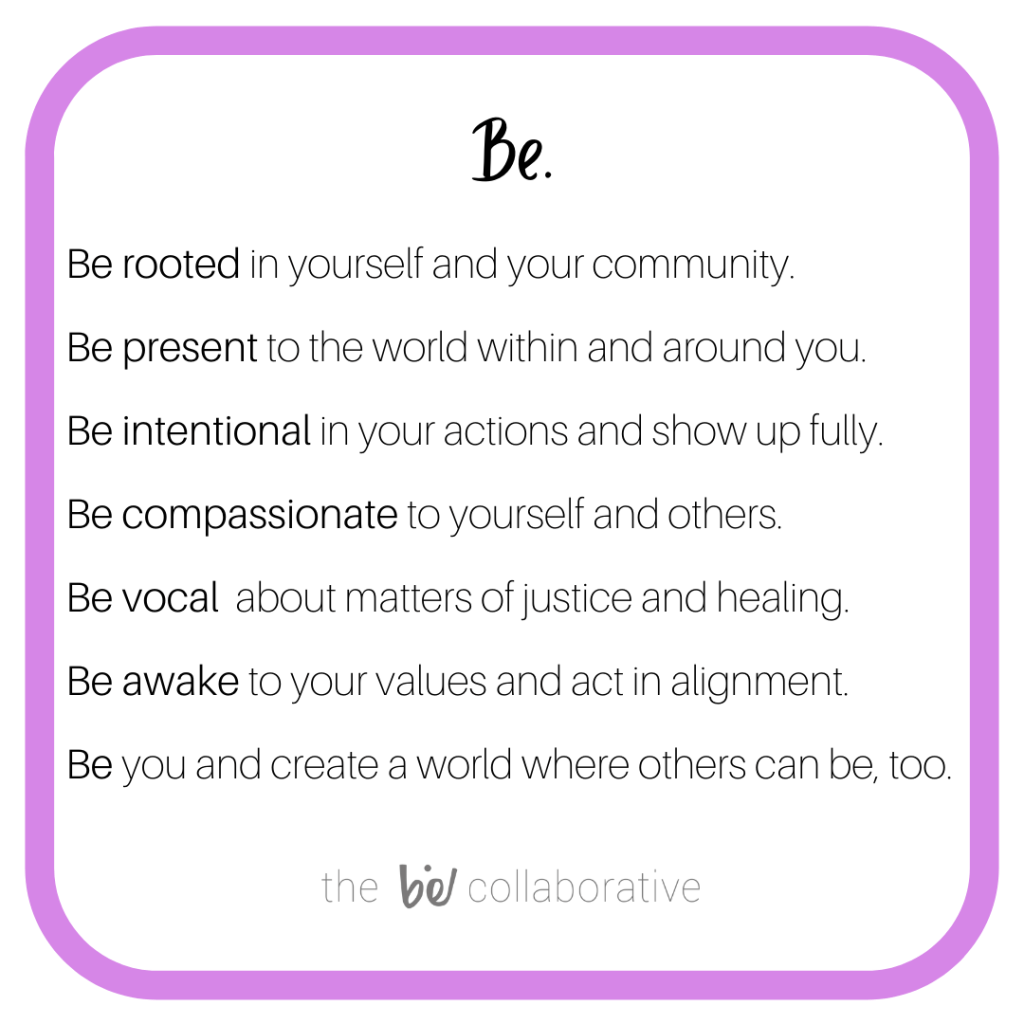 The Be Collaborative is a benefit LLC dedicated to cultivating communities where folks can be – where they feel safe, affirmed, supported, and celebrated.